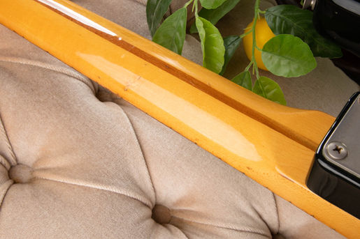 The bridge is a new Gotoh 510 unit - these are fabulous units and fitted to mega-bucks boutique guitars from Japan. The arm is a screw-in type, and the free-swing can be set with a grub screw. Tuners are new Gotoh SDS510 units to match the bridge. Only the best for this. Everything else is restored and original; once again we declare the best of new and old in perfect harmony.
