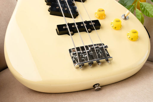 This JPJ-3 keeps the original magnificent pick-ups and features a Freeway switch that has 2 banks of 3; and a further option for 3 more tones. The toggle has a left and right movement too. Point it towards the headstock and the upper position gives you the traditional Precision pickup. In the middle we have an alternative Precision tone where the two outer-most pick-ups deliver a slightly wider more open tone - still punchy, but more mellow. In the lower position we have the bridge pick-up like a Jazz bass. Move the toggle towards the bridge and in the upper position we have both precision pick-ups in series - shoulder barging a Music Man or similar big pole humbucker out of the way. The sound is as huge as you'd expect. In the middle we have both Precision pick-ups in parallel which offers a calmer very mellow open tone. In the lower position we have the alternative Precision pick-up and the bridge pick-up in series to provide a huge growl. There's more: if you pull up the volume control, the phase of the alternative Precision pick-up is reversed and the series options suddenly take you into new territory. Unless you are rocking a mega-bucks Alembic, Phase reversal on basses gives a very empty 'clacky' sound that can easily get lost in the mix. Not so here, Stevie Wonder's Superstition no longer needs a keys player. There is more variety to chase with the tone controls as they alter the phase relationship without affecting the volume.