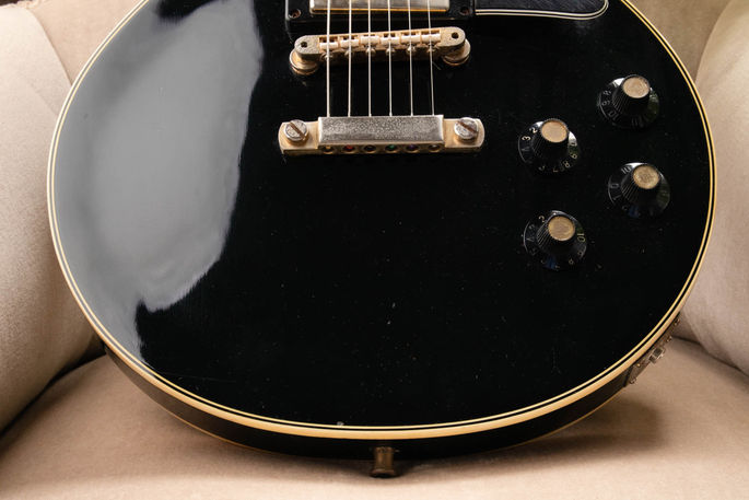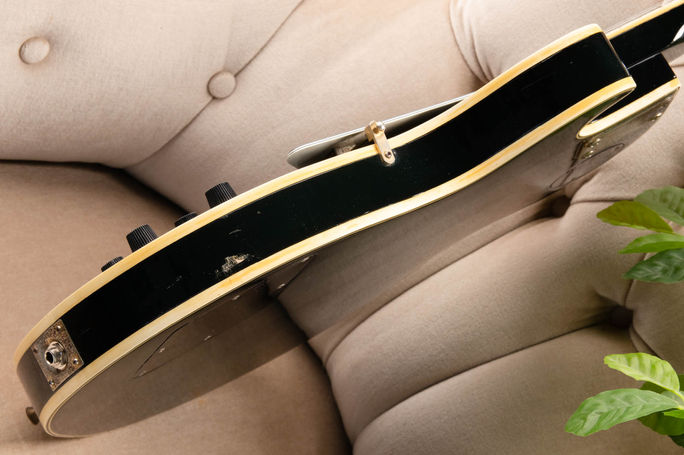 Here is a great example of an early Fujigen built model, the gold metalwork has aged as gracefully as possible; aside from one corner of the headstock, the binding is still in one piece and faded to that perfect cream colour. The original Maxon humbuckers deliver the creamy warmth at the neck, and the growl at the bridge - full of the character they are renowned for. No need to upgrade these.