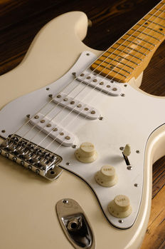 Whilst this guitar is in fantastic original condition, we feel this guitar could be an ideal donor for a DreamBuild upgrade project - the pick-up cavities can accommodate modern pick-up footprints and a modern Gotoh 101 or 510 will fit without significant surgery. Upgrade philosophy here includes the retention of all the original electronics on the original plate, and we fabricate an identical one with a slot big enough for a 5-way selector. Nothing we would do to this one is not reversible should they ever be worth silly money.