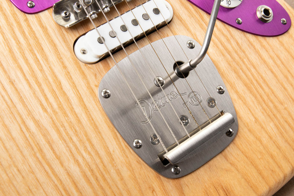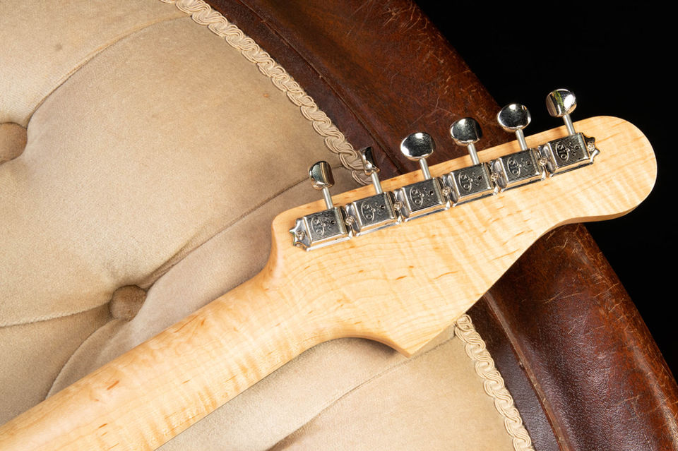 A lot of option boxes were ticked: this Firestar has a one-piece Swamp Ash body and the "highly Figured" maple neck to the JM59 standard - a bit more to get hold of, but not too much. The saddle and tremolo are Mastery products - supremely engineered and constructed and the long arm encouraging warbles, but happy to go further if required.