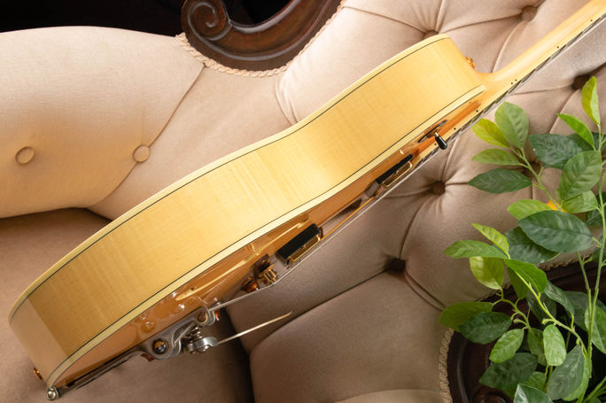 This is a Korean made JP, a Samick produced version, so assured of a very solid construction unlike some Indonesian and Chinese versions. This one has a delightful Bigsby tremolo which is rarely seen on an Emperor, and this plays wonderfully with it; tuning is stable and it doesn't slide around the top like a few Gretsches we have wrestled with.