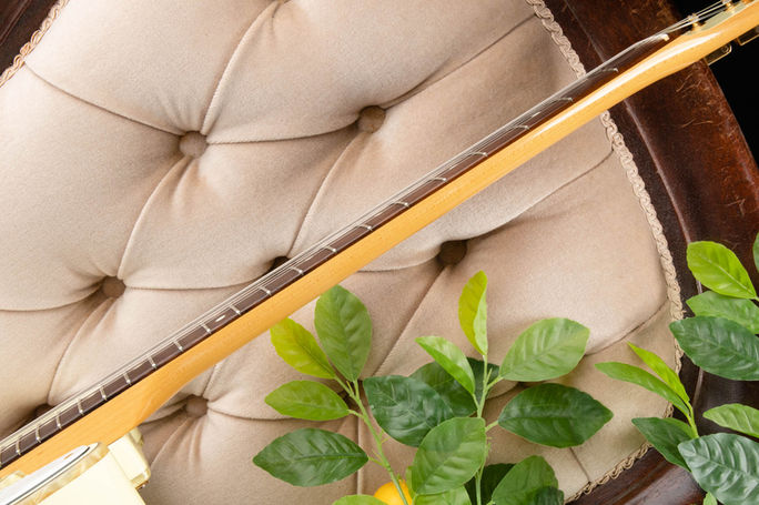 This model seems to be missing from the catalogues - don't mistake this for a 40th Anniversary TLG-70P - the model designation for this one is very clearly stamped on the neck and the body. In 2010, a similar model called the TL-62B was available, but with different neck and binding. This is a TLG-94P, Crafted in Japan, so a transition model as Fujigen gradually transferred to Dyna.