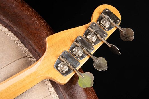 Vital stats then: the nut is 40mm and the 12th fret is 55mm; the weight is 4.46kg (9lbs 13oz). A very nice comfortable and balanced bass, and the wider nut making it a little easier to play than the 36mm nuts on the earlier models from Fujigen. This bass now has new frets so ready for another 15 years at least - the original Maxon pick-ups are in rude health, the bridge is also original; a little pitted and showing its 50 years of service, but still thoroughly functional so we have elected to keep it. We can easily upgrade it to a current Gotoh unit which will be shinier, and could even install a High Mass version if huge sustain and Grand Piano tones are required. The previous owner decided to swap the old white scratch plate to a black one - this was and remains a popular decision - again we can get it back to catalogue spec, or even apply a fancy such as those you see in our DreamBuild section.