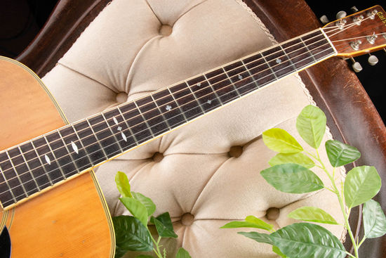 This is wannabe D-28; a very classy imitation, and differs only in that this Tokai is soft and cuddly to play. Most D-28s (most Martins) like to fight you a bit but this is a characteristic Tokai left out. This is an absolute delight to play - no silly high action, no choking and buzzing, just slick and rewarding regardless of the level that you play at. You will see in the photos that this has been a busy guitar and that's always a good sign. Like most Terawaki guitars, the belly has a slight hump, but this is no cause for concern - the bracing is all good, the action is very playable all the way up the neck, and there is plenty of saddle left if you need an even lower action. We think we have this one set up just right.